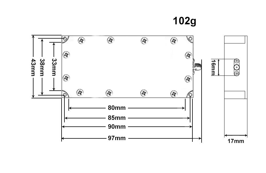 | Nome do produto: | módulo do jammer do zangão | Banda de frequência: | 433 MHz 500 MHz 600 MHz |