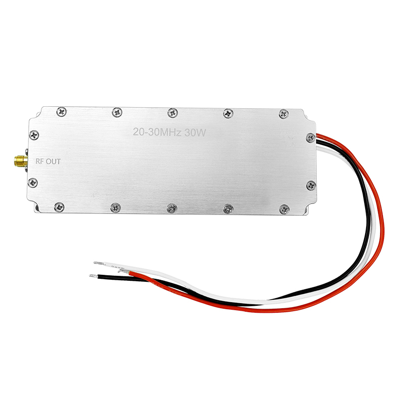 Este é um módulo amplificador de potência RF personalizável e de alto desempenho . Ele fornece 20–30W de potência de saída contínua em uma faixa de frequência definida pelo usuário dentro da faixa de 20–100MHz. Este módulo possui alta potência de saída média, boa planicidade na banda e pequeno deslocamento entre a banda lateral superior e inferior. A faixa de frequência e a potência de saída do módulo podem ser personalizadas de acordo com as necessidades do cliente.