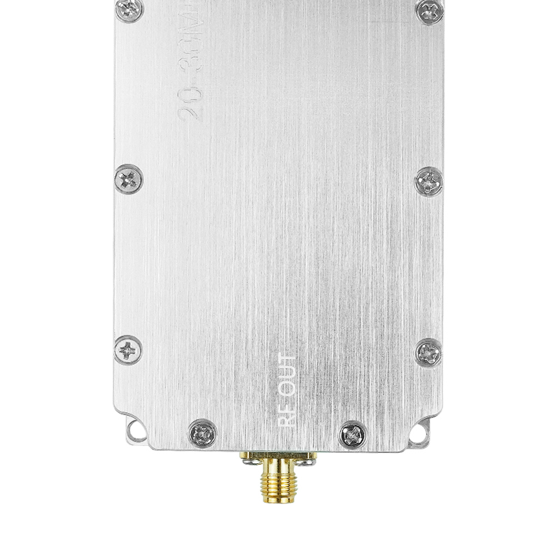 Faixa de Frequência Totalmente Personalizável: O módulo pode ser adaptado para operar em uma frequência central e largura de banda específicas dentro do espectro de 20–100MHz. Isso permite o direcionamento preciso de links exclusivos de comunicação, controle ou navegação usados por certos UAVs, sistemas legados ou equipamentos especializados.