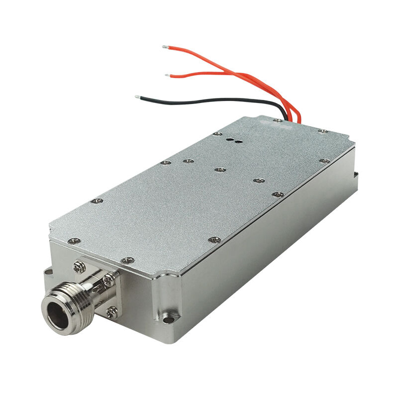 Este é um componente central construído paraDestruir os sinais dos dronesÉ umModulo de amplificador de potência de radiofrequência (RF)que atua como o "músculo" para uminterferente de drones (sistema anti-UAS)Leva um sinal fraco e aumenta-o para um poderoso50 watts, em seguida, transmite através de uma antena parabloquear, interromper e desativar drones indesejadosAo subjugar o controlo, GPS e ligações de vídeo.